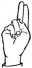 На ћирилици написано МАКСИМ МЕЧАНИН састоји се из 13 слова [?]. Исписано ћириличном једноручном азбуком за глувонеме: